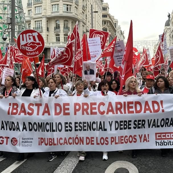 El pasado sábado 23 de noviembre, los trabajadores de la Ayuda a Domicilio de Madrid salieron a las calles para exigir mejores condiciones laborales. Exigen tanto al Ayuntamiento como a la Comunidad, que se actualicen los pliegos de condiciones, lo que supondría la implementación de un nuevo convenio (acordado con la patronal), con mejores condiciones laborales.